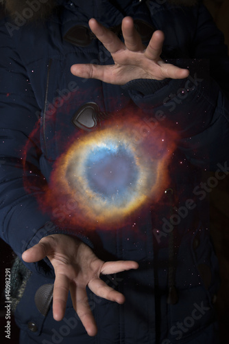 Wall mural The vast universe in the hands of a child. Elements of this image furnished by NASA.