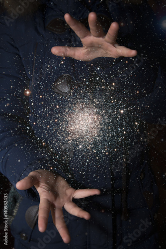 Wall mural the vast universe in the hands of a child. elements of this image furnished by nasa.
