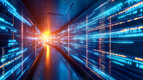 The watermark will not be included on Wall mural.: The vibrant tunnel showcases a mesmerizing display of lights resembling flowing data streams - the wa