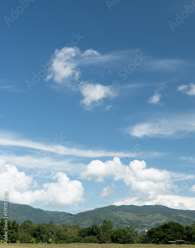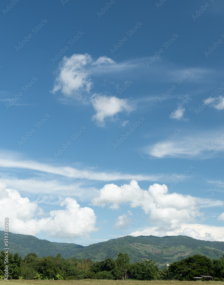 Wall mural the white clouds have a strange shape and moutain.the sky and the open space have mountains below.