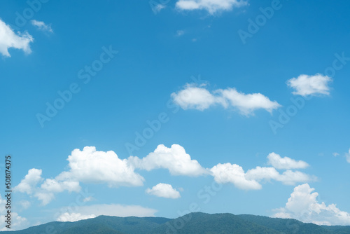 Wall mural the white clouds have a strange shape and moutain.the sky and the open space have mountains below.