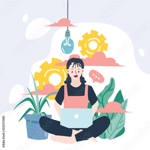Wall mural the woman is working on the development of the design concept idea project. people help to generate  - Wall murals Wall mural the woman is working on the development of the design concept idea project. people help to generate - Wall murals