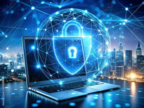 Wall mural : The world is floating in the digital universe - the concept of protecting global network data -