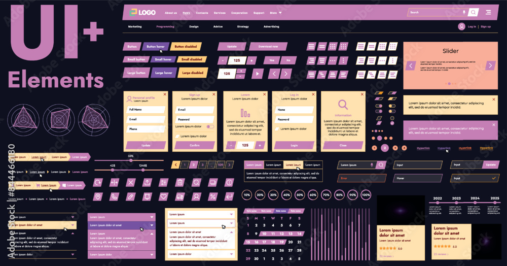 The watermark will not be included on Wall mural.: These graphic components provide a comprehensive approach to the development of interfaces that meet