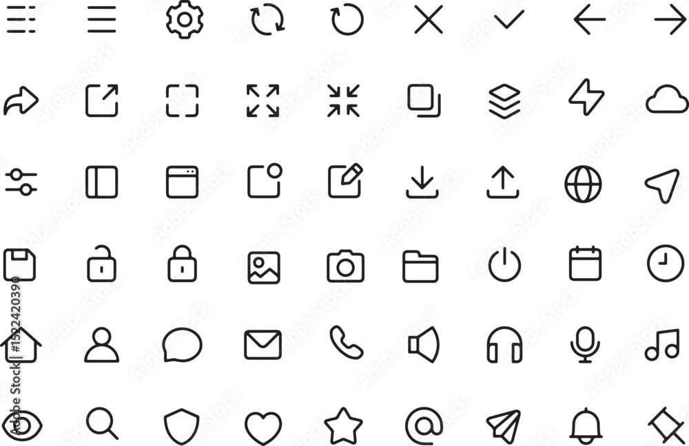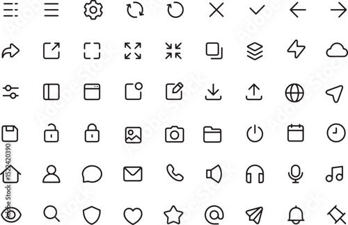 Wall mural thin line icon set for graphical user interface ui of mobile app web application software button. pi - Wall murals Wall mural thin line icon set for graphical user interface ui of mobile app web application software button. pi - Wall murals