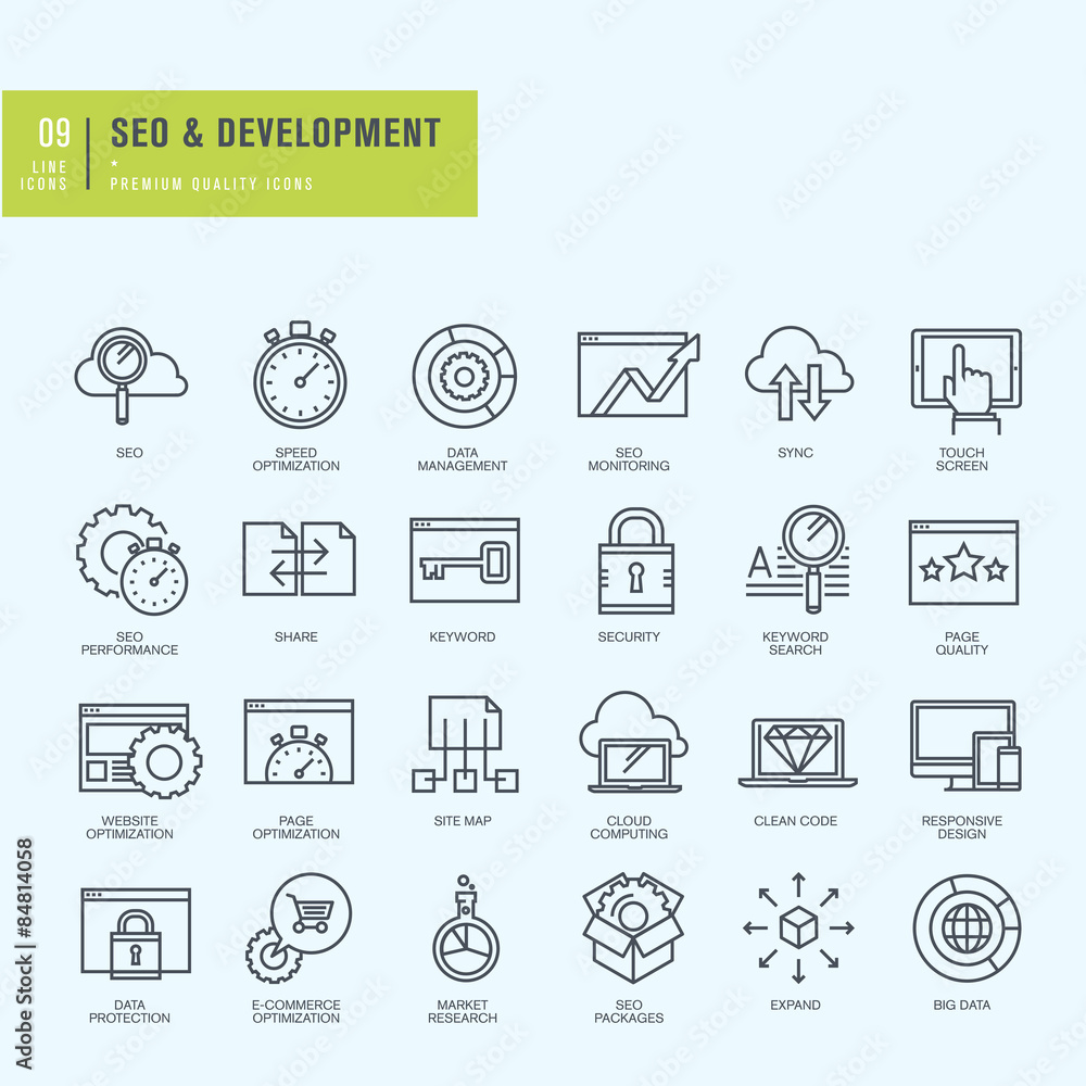 Thin line icons set - icons for seo, website and app design and development - Wall mural