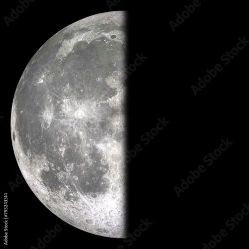 The watermark will not be included on Wall mural.: Third (last) quarter (moon phase), "elements of this image furnished by nasa ", isolated black backg