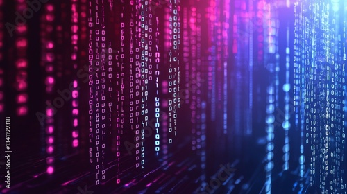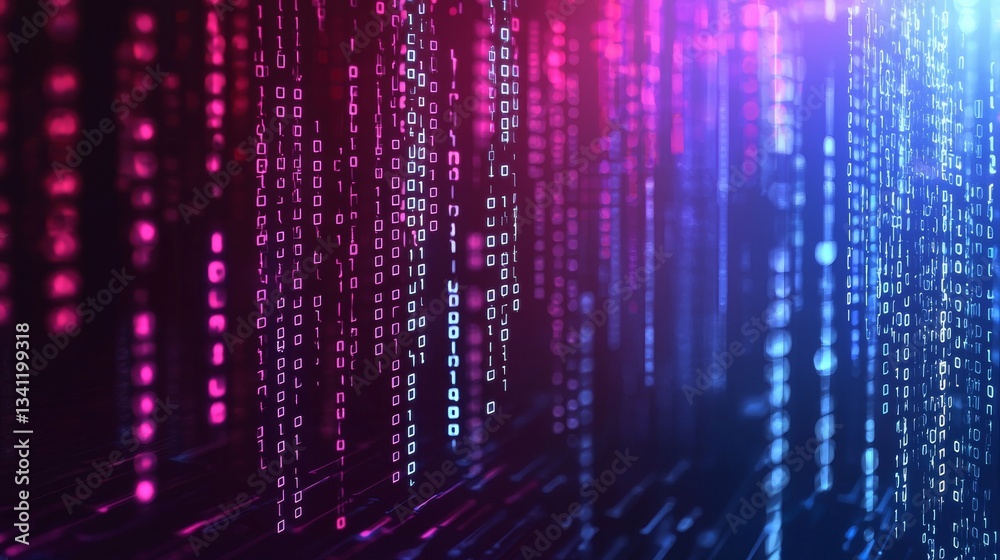 The watermark will not be included on Wall mural.: This abstract background image features the digital data stream with binary code, embodying the conc