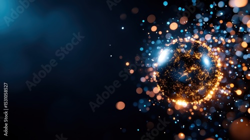 Wall mural this captivating abstract image showcases a glowing spherical object surrounded by luminous particle - Wall murals Wall mural this captivating abstract image showcases a glowing spherical object surrounded by luminous particle - Wall murals