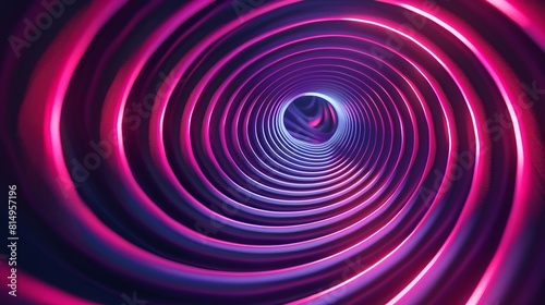 The watermark will not be included on Wall mural.: This graphic design features an abstract illusion of a spiral, composed of pink and violet neon line