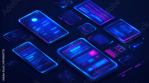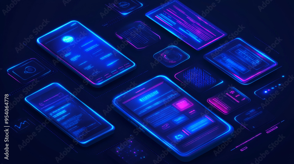 Wall mural this image concept features a designer meticulously crafting a unique user interface for a mobile ap - Wall murals Wall mural this image concept features a designer meticulously crafting a unique user interface for a mobile ap - Wall murals