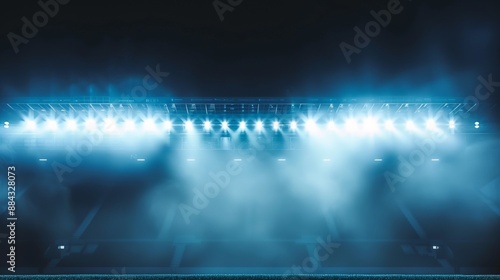 Wall mural this image depicts an array of bright stadium lights cutting through the misty night air, their inte - Wall murals Wall mural this image depicts an array of bright stadium lights cutting through the misty night air, their inte - Wall murals
