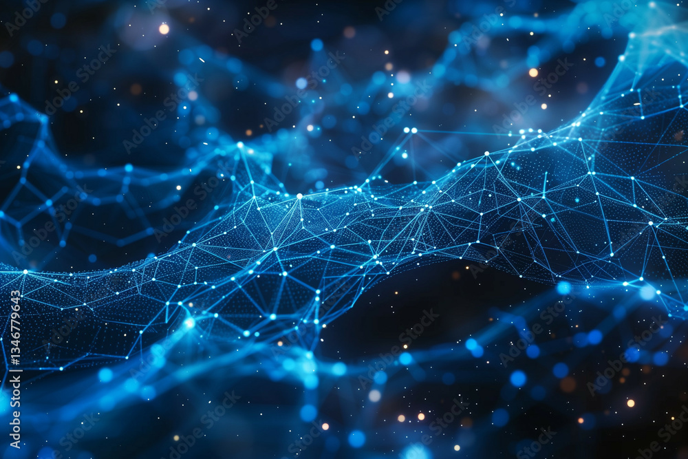 The watermark will not be included on Wall mural.: This image illustrates a dynamic and intricate network of blue glowing nodes and connections against