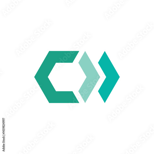 Wall mural this is a geometric logo design of a letter c in hexagonal shape with two arrowheads facing right