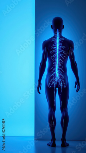 Wall mural this is an image showing a human figure with highlighted nerves along the spine, illustrating the co - Wall murals Wall mural this is an image showing a human figure with highlighted nerves along the spine, illustrating the co - Wall murals