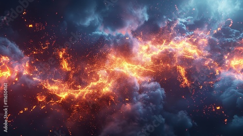 The watermark will not be included on Wall mural.: This photo depicts a striking abstract image of a blue and black background illuminated by multiple
