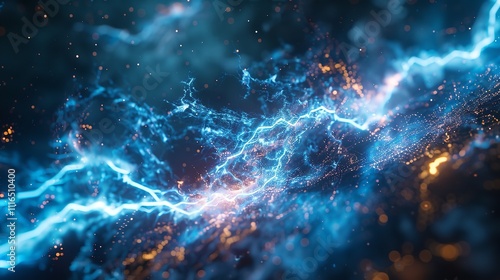The watermark will not be included on Wall mural.: This photo depicts a striking abstract image of a blue and black background illuminated by multiple