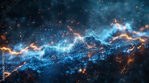 The watermark will not be included on Wall mural.: This photo depicts a striking abstract image of a blue and black background illuminated by multiple