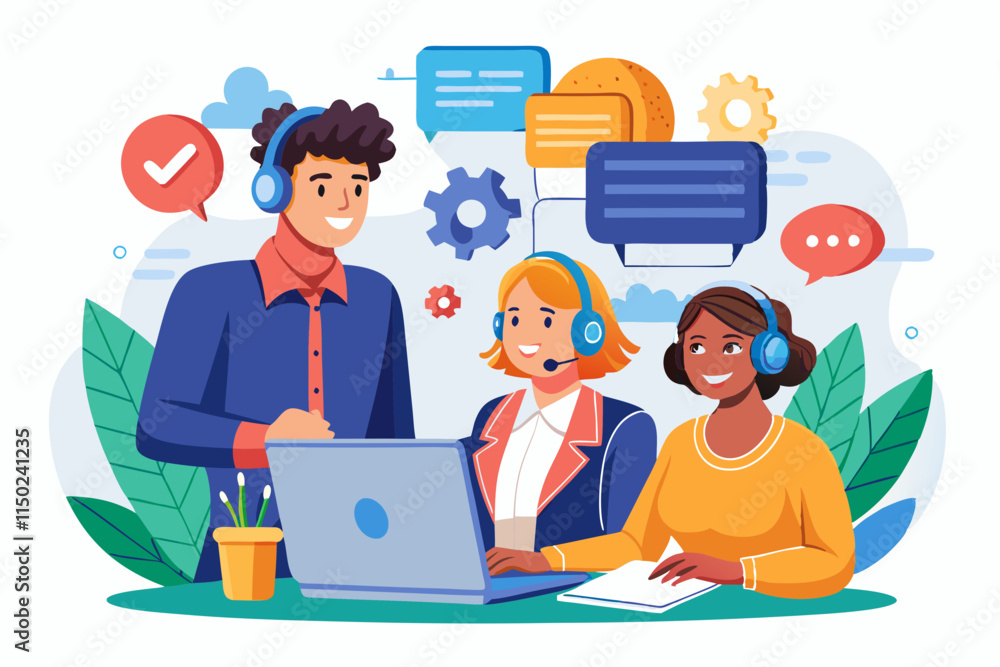 The watermark will not be included on Wall mural.: This scene showcases a customer service representative resolving a customer issue, highlighting the