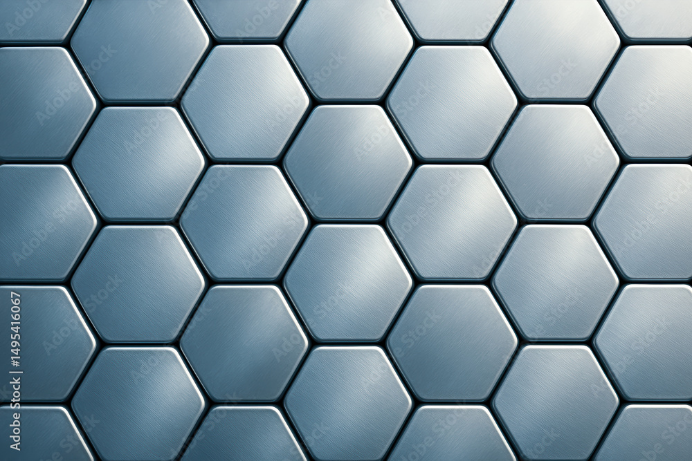 The watermark will not be included on Wall mural.: This showcases a smooth metallic surface featuring tessellated hexagons that create a striking symme
