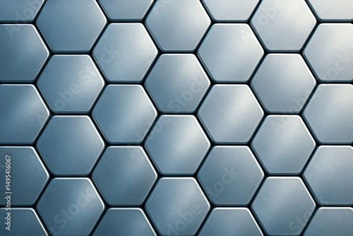 Wall mural this showcases a smooth metallic surface featuring tessellated hexagons that create a striking symme