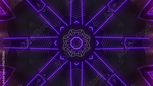 The watermark will not be included on Wall mural.: This stock motion graphic video of neon kaleidoscope pattern loop with gentle overlapping curves on