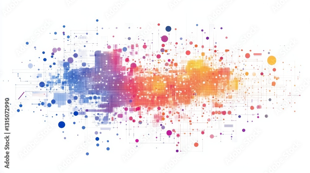 The watermark will not be included on Wall mural.: This vibrant and dynamic background features an abstract composition of colorful dots and shapes, pe