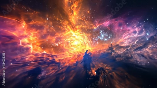 Wall mural this video captures a vibrant space scene filled with stars and clouds, creating a captivating and b