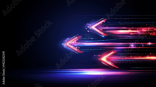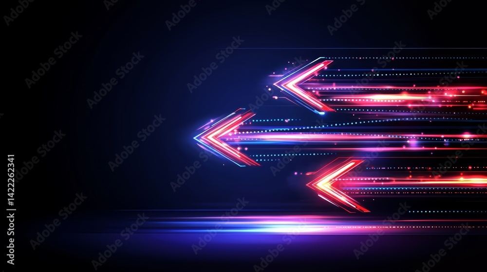 The watermark will not be included on Wall mural.: Three arrows are shown in a blue background with a red and blue color scheme - the arrows are pointin