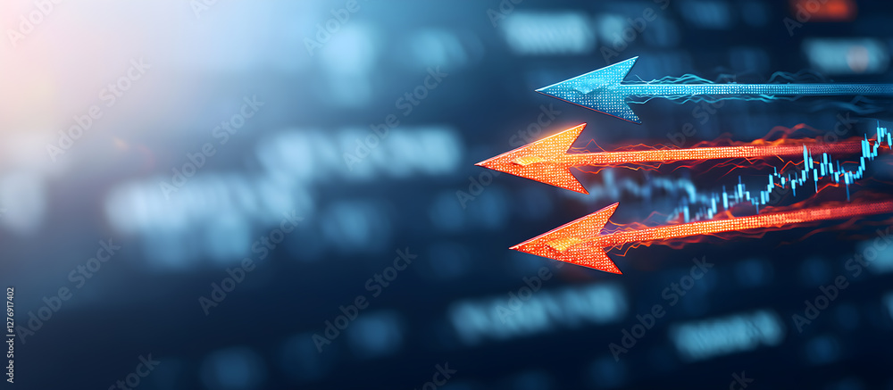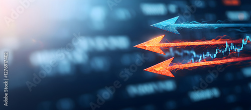 The watermark will not be included on Wall mural.: Three arrows pointing in different directions on a blue background