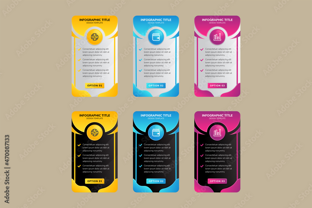 Wall mural three colorful rectangular element organized in horizontal raw. modern infographic design template.
