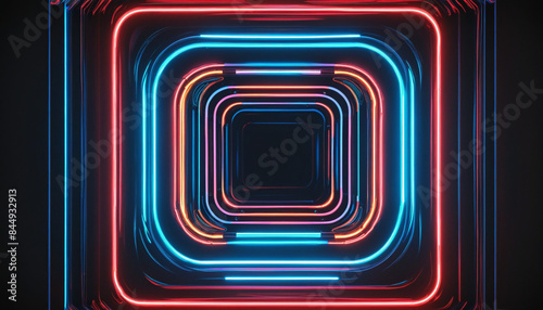 Wall mural three-dimensional neon lines illuminate this abstract background, creating a vibrant and futuristic  - Wall murals Wall mural three-dimensional neon lines illuminate this abstract background, creating a vibrant and futuristic - Wall murals