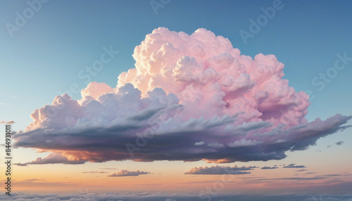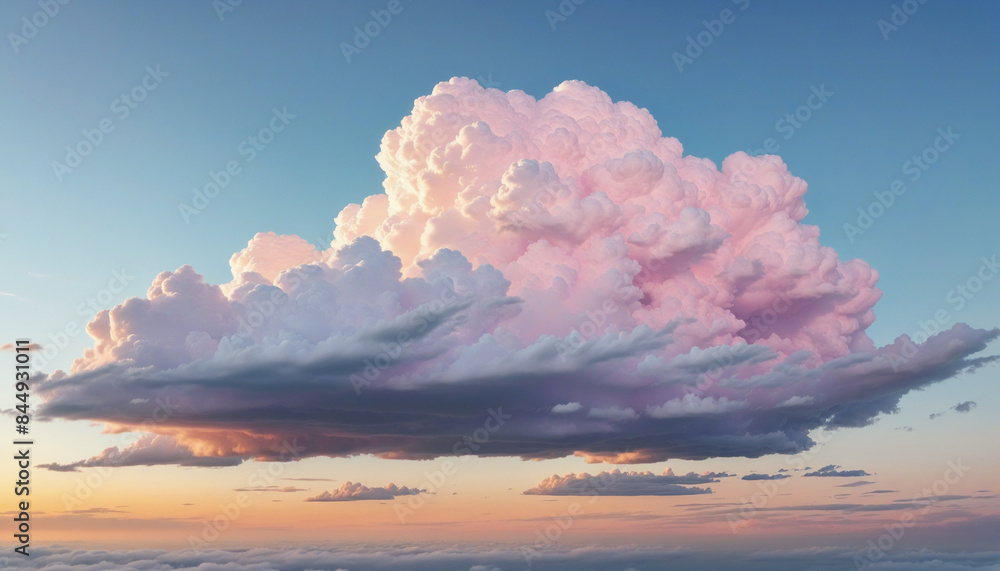 The watermark will not be included on Wall mural.: Three-dimensional realistic cloud isolated on white background with soft pastel colors, creating a m