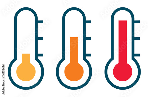 Wall mural : Three vector thermometer showing the temperature from warm to ve