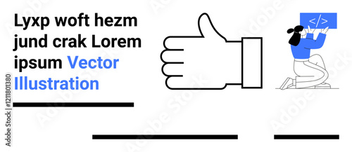 The watermark will not be included on Wall mural.: Thumbs up symbol with coder girl holding code, text boxes, and placeholder text - ideal for web desig