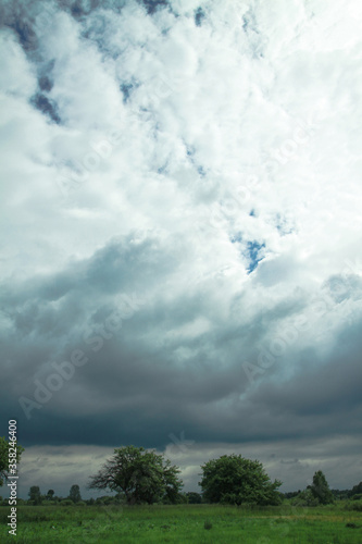 Thunderous epic clouds in a field near the old garden - stock photo background with heaven - Wall mural