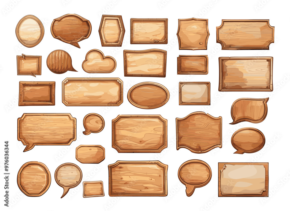 The watermark will not be included on Wall mural.: Timber speech balloons cartoon vector collection - square rectangular circular talk bubbles plaques b