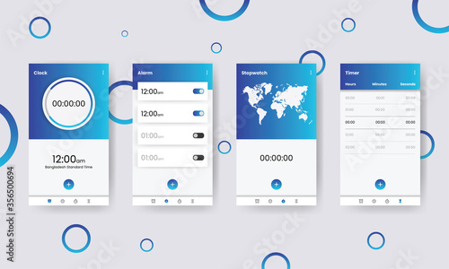 Wall mural Time app vector design. Illustration of clock and timer, alarm and stopwatch.Digital clock alarm phone application. Cellphone watch widget futuristic vector user interfaces. - Wall murals Wall mural Time app vector design. Illustration of clock and timer, alarm and stopwatch.Digital clock alarm phone application. Cellphone watch widget futuristic vector user interfaces. - Wall murals