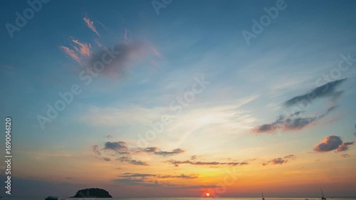 Wall mural time lapse colorful reflection of stunning sunset. beautiful scene with the sun painting the sky abo