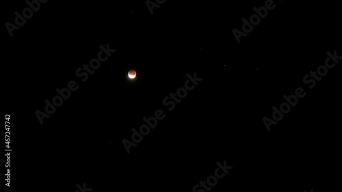 The watermark will not be included on Wall mural.: Time lapse of a blood moon eclipse with the moon rising high into the sky against a dark and starry