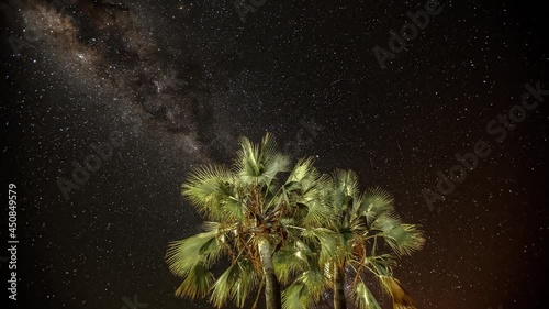 The watermark will not be included on Wall mural.: Time lapse of the stars and milky way moving behind some palm trees - shot in namibia -