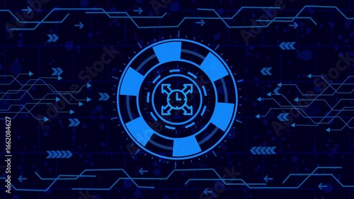 Wall mural : Time reminder ,clock icon animation, futuristic technology interface with glowing circuit board and