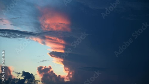 Timelapse of sky with weather changing from peaceful sunset into storm with lightning visible in theWall mural