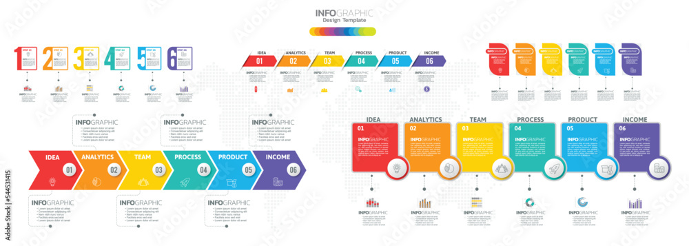 The watermark will not be included on Wall mural.: Timeline infographic vector with 6 steps can be used for workflow layout diagram annual report web d