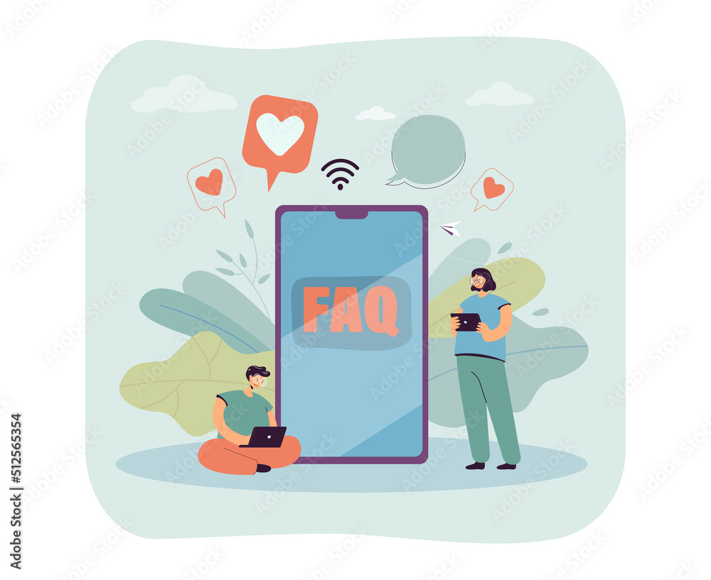Wall mural tiny customers searching information in faq mobile app. advices, answers on questions for people fla - Wall murals Wall mural tiny customers searching information in faq mobile app. advices, answers on questions for people fla - Wall murals