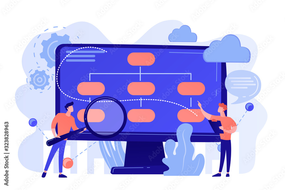 Wall mural tiny people analyst and data scientist working with data. data driven business model, comprehensive  - Wall murals Wall mural tiny people analyst and data scientist working with data. data driven business model, comprehensive - Wall murals
