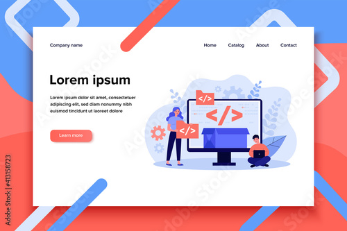 The watermark will not be included on Wall mural.: Tiny programmers programming website for internet platform flat vector illustration - cartoon develop