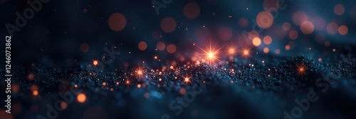 Wall mural : Tiny starlight sparks float freely on a deep black canvas with intricate bokeh details, mysterious,