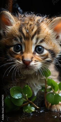 The watermark will not be included on Wall mural.: Tiny tiger baby in the jungle - closeup created using generative ai tools