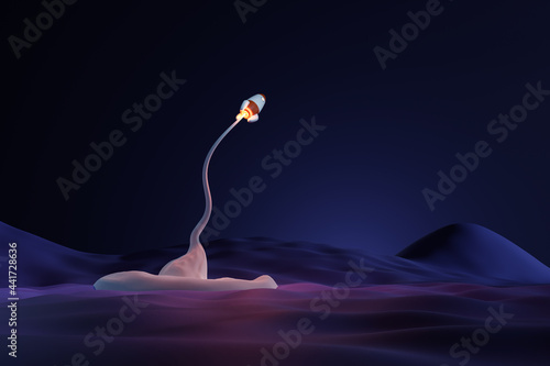 The watermark will not be included on Wall mural.: Toon rocket launch from deep space planet - cartoon startup concept - 3d rendering -